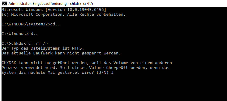 Die zweite Möglichkeit einer Festplatten-Überprüfung besteht mit dem Windows-Internen Programm "chkdsk"